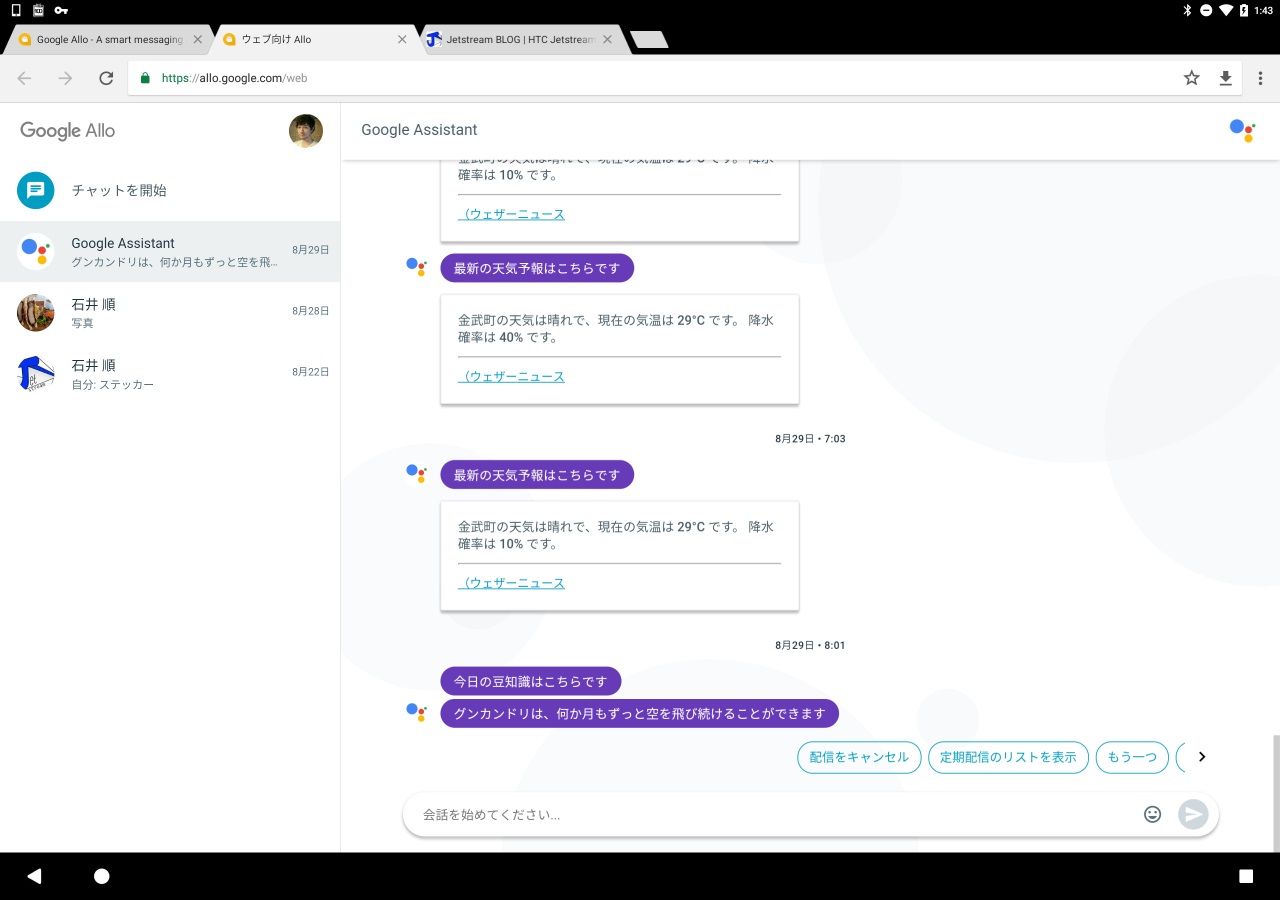 WEB 版「Google Allo」の仕様は基本的にスマートフォン版と同じです。「Google アシスタント」との会話ももちろん行うことができます。