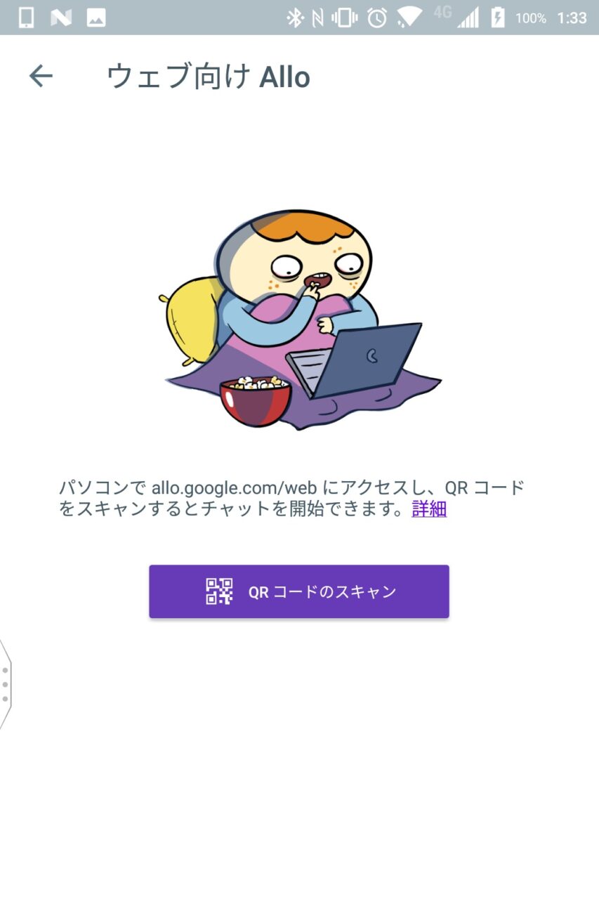 そのまま先ほどの「Allo for web」ページに表示されている QR コードをスキャンします。これですぐに WEB 版「Google Allo」が利用できるようになります。