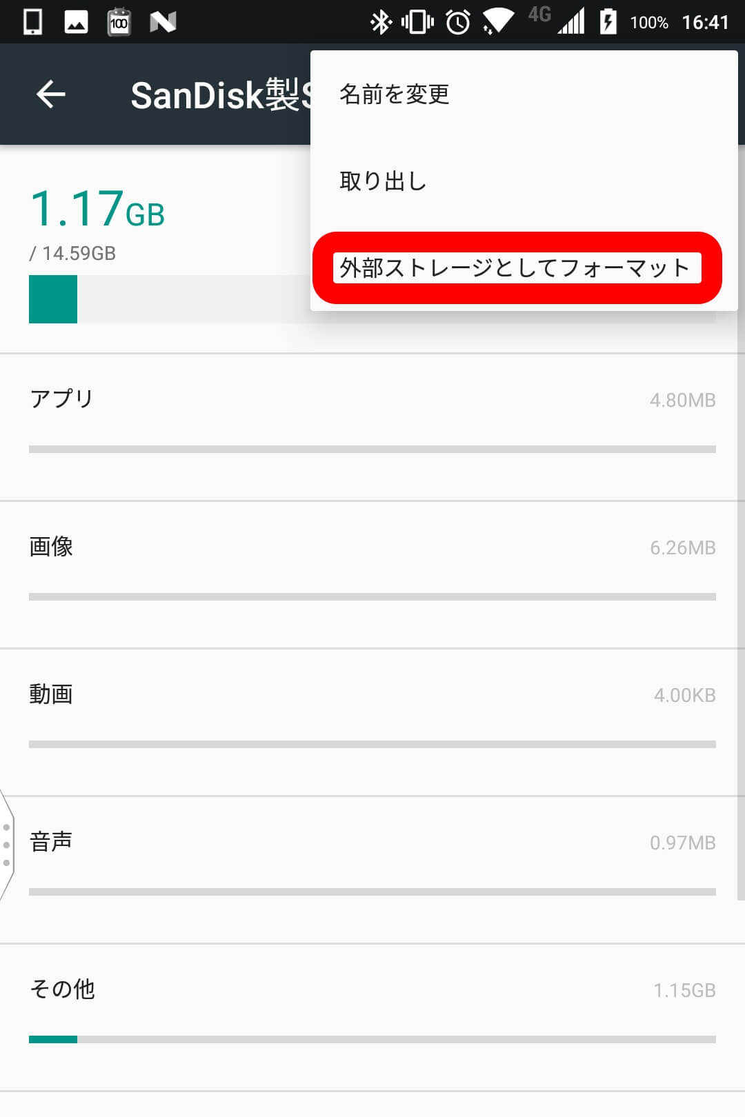 メモリーカードを外部ストレージとしてフォーマットする方法は、内部ストレージとしてフォーマットする方法と基本的に手順は変わりません。