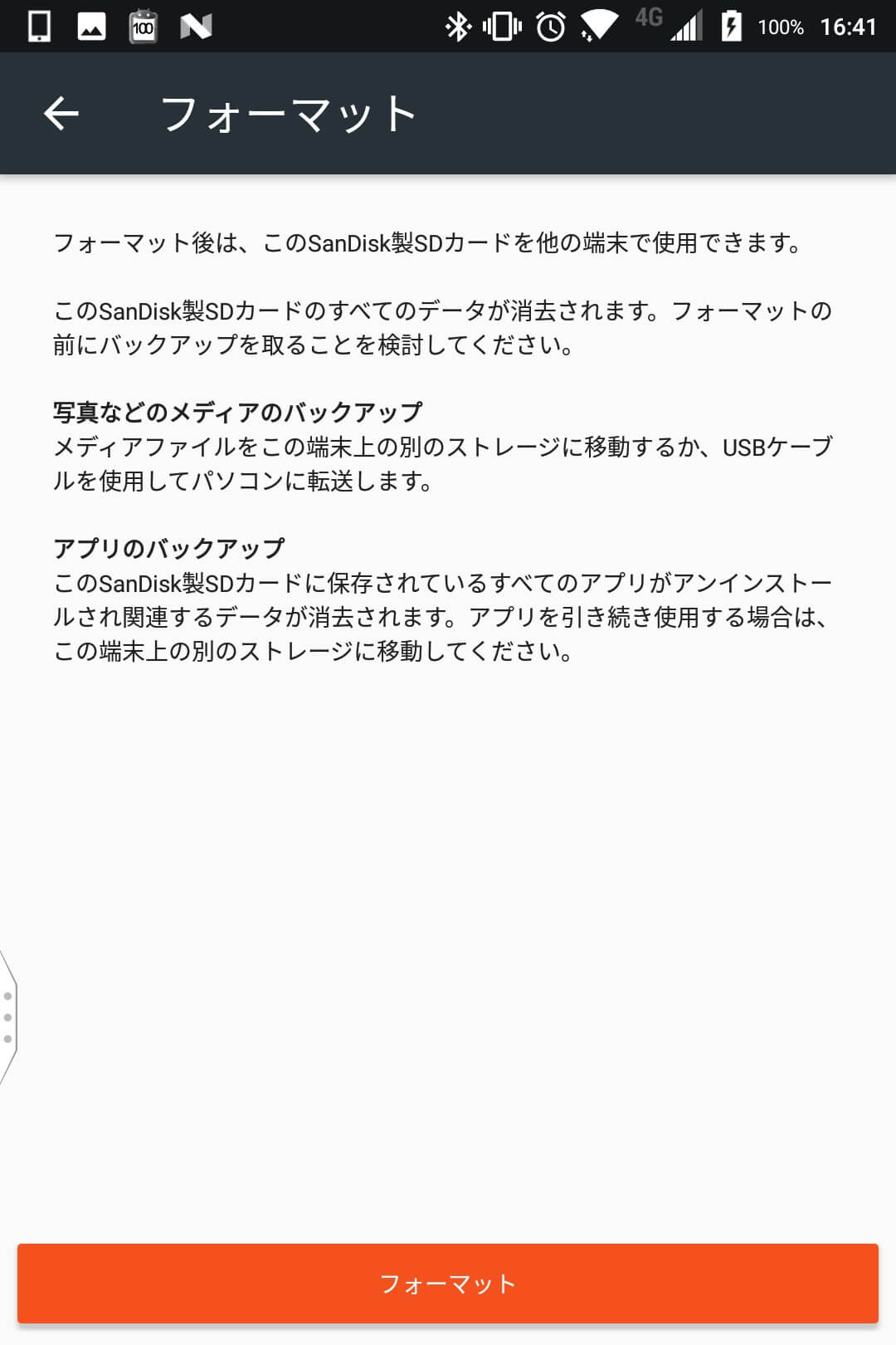 ただし、外部ストレージとしてフォーマットする場合、内部ストレージとしてフォーマットしたときと同様に、メモリーカードのファイルが全て削除され初期化されます。