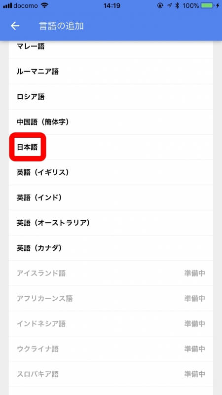 アップデートが完了したら「Gborad」アプリを開いて、“言語” → “言語を追加” の順にタッチし、言語一覧の中から “日本語” を探してタッチします。