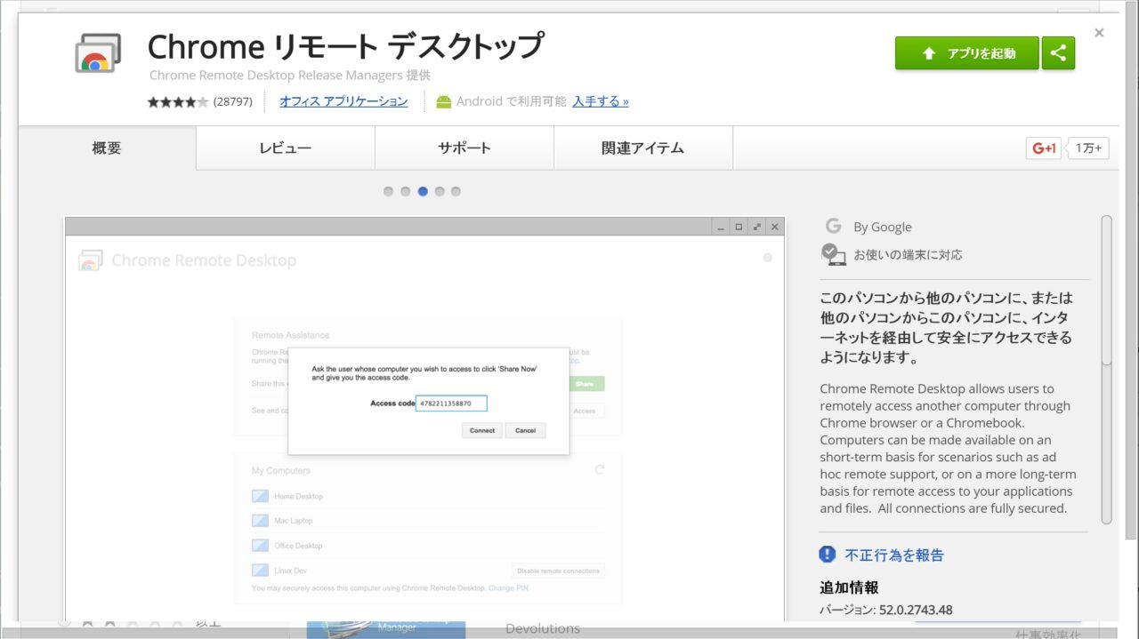 「Chrome リモート デスクトップ」