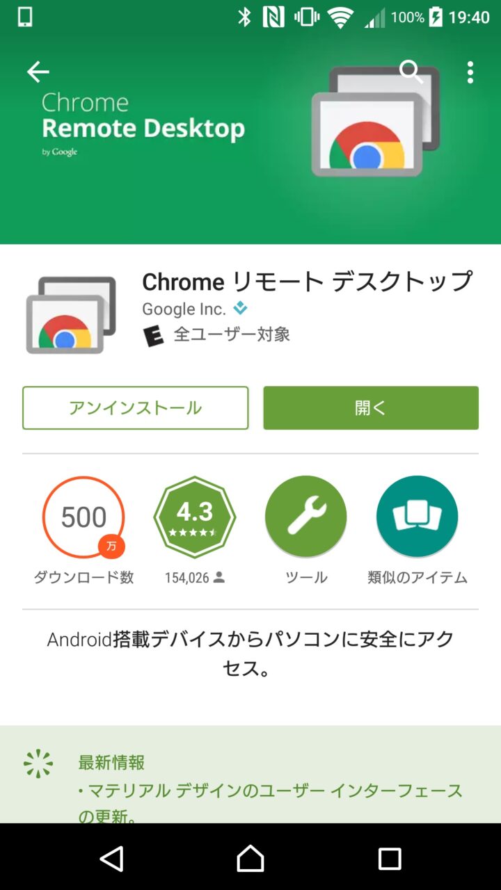そして、遠隔操作を行う Android や iPhone に「Chrome リモート デスクトップアプリ(Android / iOS)」をインストールすることが第 2 ステップとなります。
