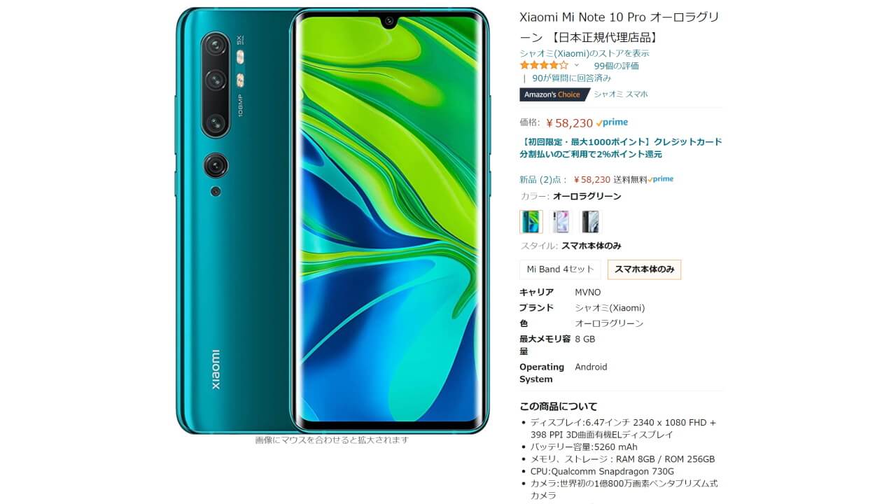 「Xiaomi Mi Note 10 Pro」が久々特価
